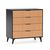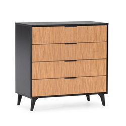 ·, La commode Denis a la structure principale en noir et les façades des tiroirs ont une finition couleur bois, une finition qui se distingue par son effet tige verticale.