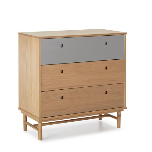 Commode de nuit Magnus 3 tiroirs , bois massif , 80 cm Largeur