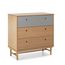 - Structure principale en couleur chêne avec des tiroirs en gris et ouverture avec poignée ronde qui lui apportera une touche élégante au meuble avec de lignes droites et simple.