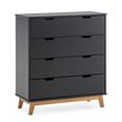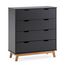 Commode Miranda avec 4 tirois en Couleur Anthracite, Pieds en Bois Naturel