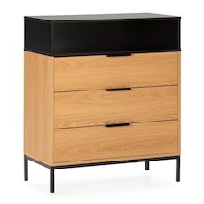 ·, La commode de chambre Nieve est un meuble en chêne et noir qui mettra en valeur un style décoratif moderne dans la pièce. Un meuble qui se distingue par sa présence et ses lignes droites, un style simple et minimaliste qui transformera la décoration de votre pièce en lui apportant un air de chaleur et de confort.