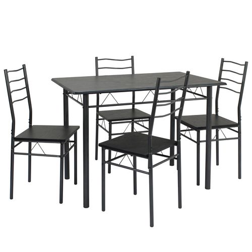 Ensemble de Table et 4 chaises Lima pour Salle à Manger Noir/Gris