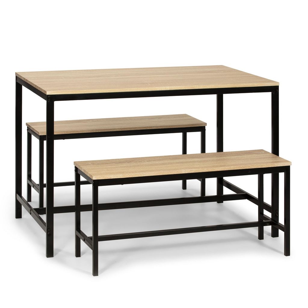 Ensemble Table et 2 bancs Lisboa pour Salle à Manger et Cuisine, Structure métallique
