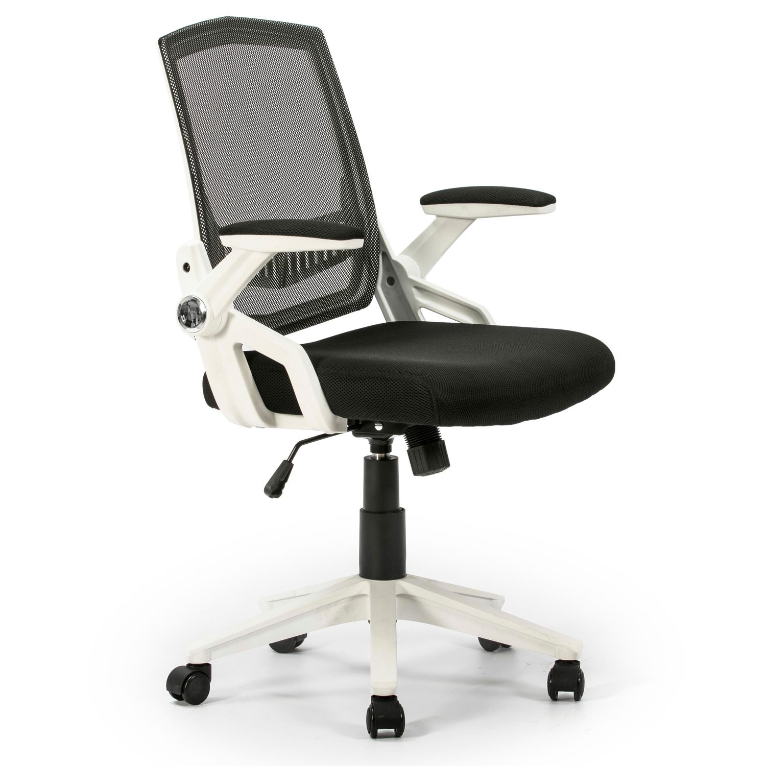 ·, Réglage millimétrique en hauteur, Toplift·, Mécanisme basculant, réglable en fonction du poids corporel.·, Large assise.·, Tissu: maille grande transpirabilité.·, Accoudoirs abattables en plastique en blanc.·, Large base et stable, spécialement grande et de des