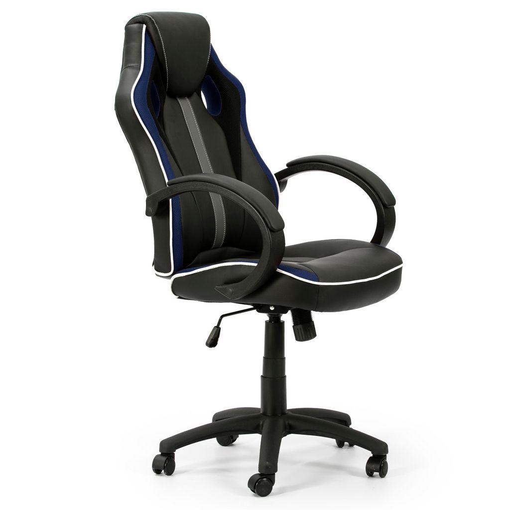 Fauteuil de Bureau réglable et inclinable Formula tapissé en Similicuir, Noir/Bleu
