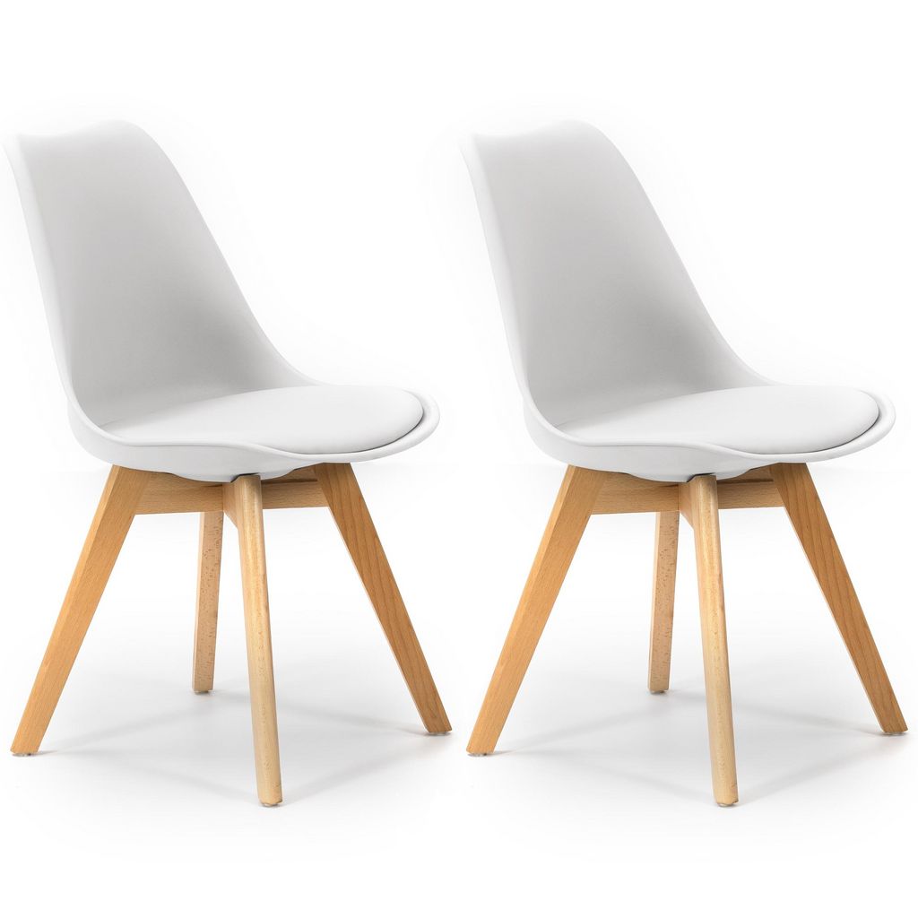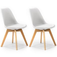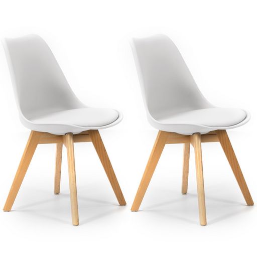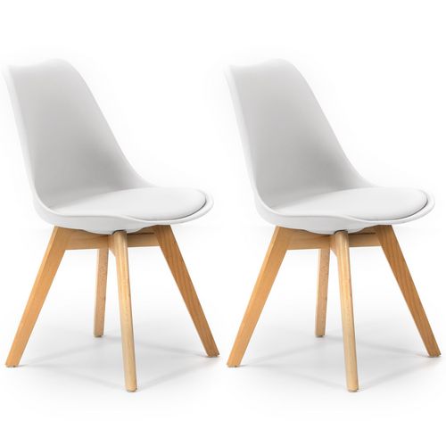 Lot de 2 Chaises Klara Blanc tapissées en Cuir synthétique avec Pieds Bois