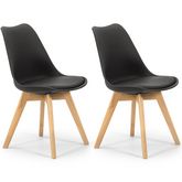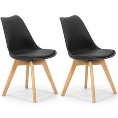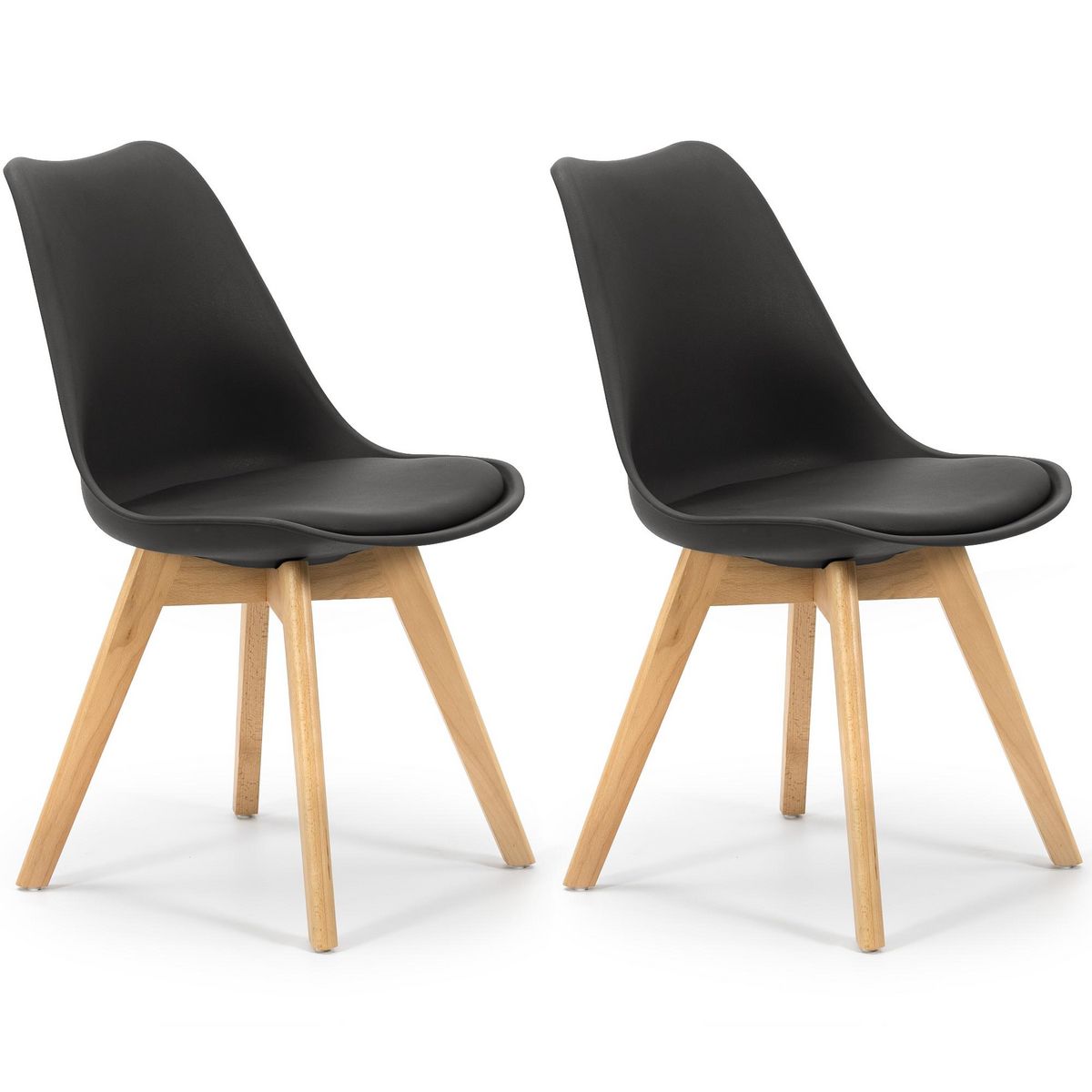 Lot de 2 Chaises Klara Noir tapissées en Cuir synthétique avec Pieds Bois