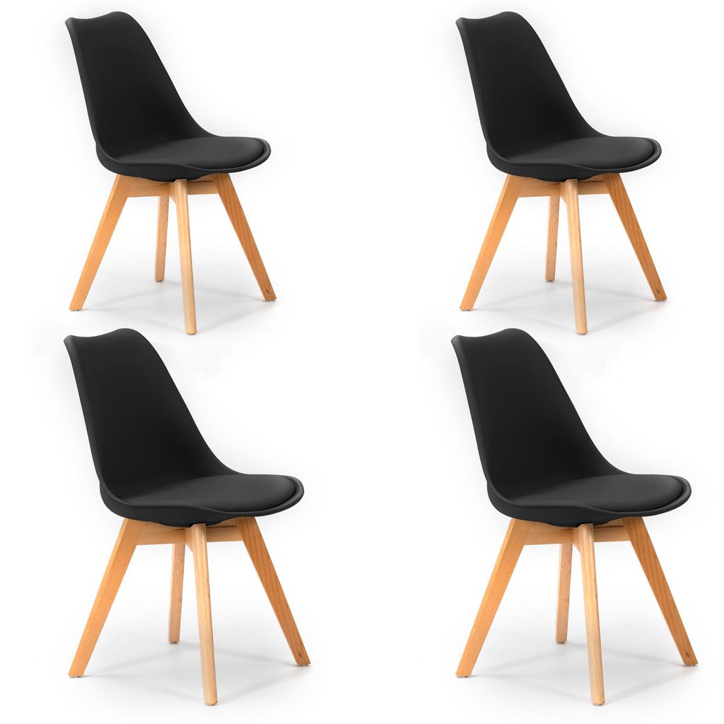 Lot de 4 Chaises Klara Noir tapissées en Cuir synthétique avec Pieds Bois