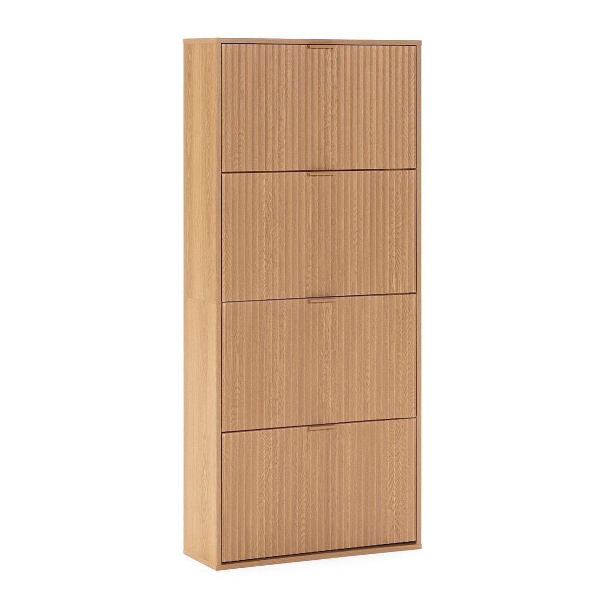 Meuble à chaussures Lluvia 4 portes couleur chêne, pour 24 paires