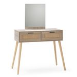 Meuble d'entrée Dalia 2 tiroirs + miroir, couleur chêne, 90 cm longueur