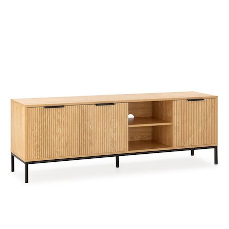 ·, Ce meuble TV a une finition à rayures horizontales, quelque chose de très caractéristique et distinctif qui donne du style et de la sophistication à votre salon. L'intérieur de ses portes, ainsi que ses espaces, possèdent une capacité de rangement suffisante pour ranger tout ce que vous souhaitez avoir sous la main lorsque vous en avez besoin. Quelques livres, jeux vidéo, loisirs, piles, câbles... Vous décidez ce que vous souhaitez laisser exposé ou ce que vous souhaitez garder à l'abri des regards indiscrets.