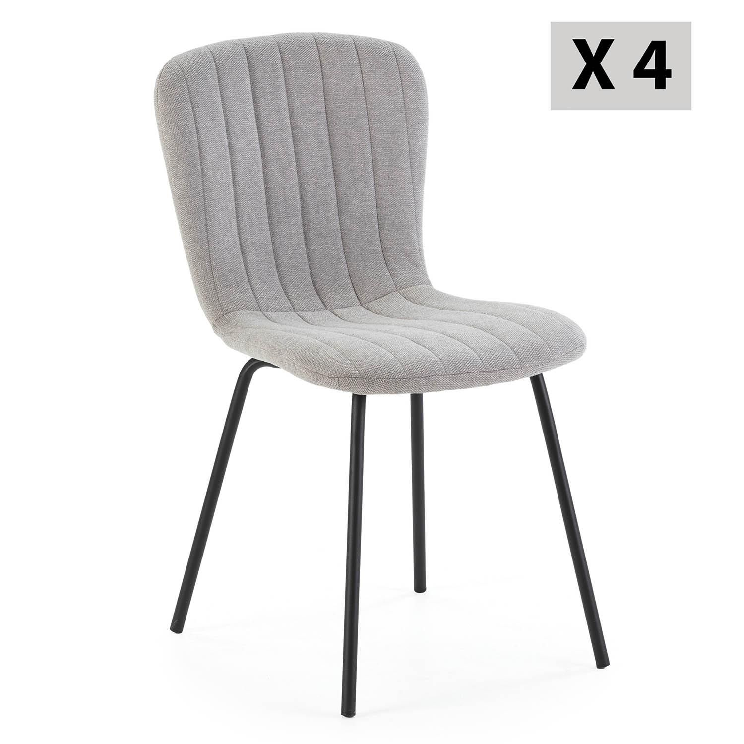 Pack 4 chaises Lucky recouvertes de tissu gris clair