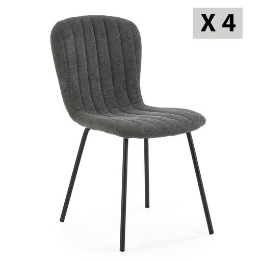 Pack 4 chaises Lucky recouvertes de tissu gris foncé