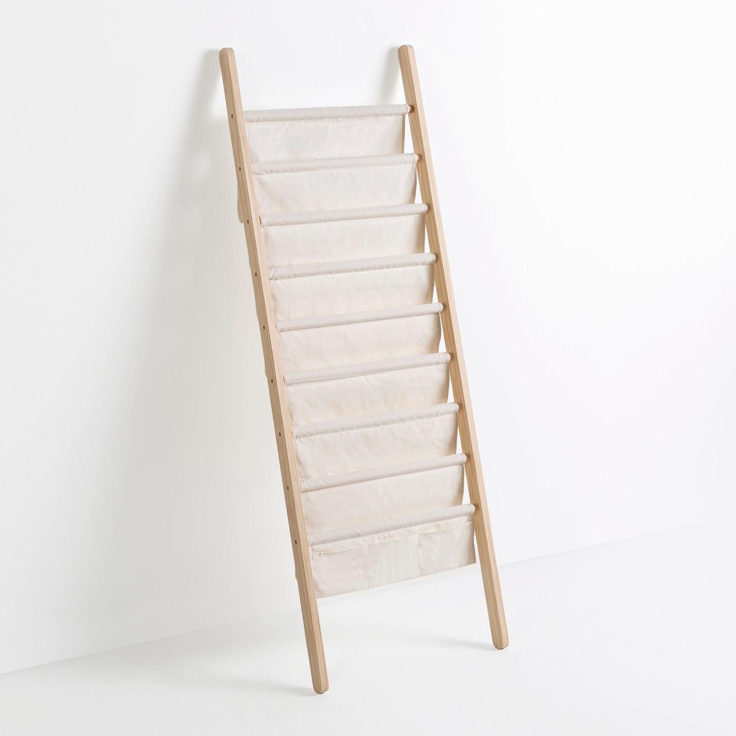 Porte-revues Xoel en tissu et bois avec 8 sections