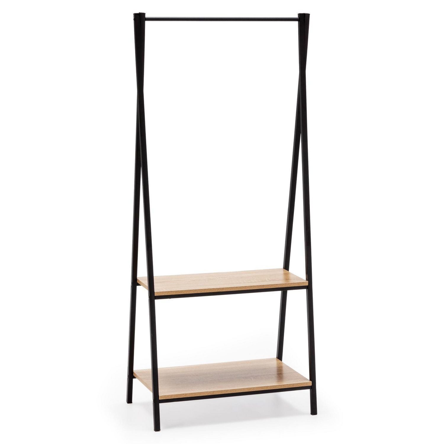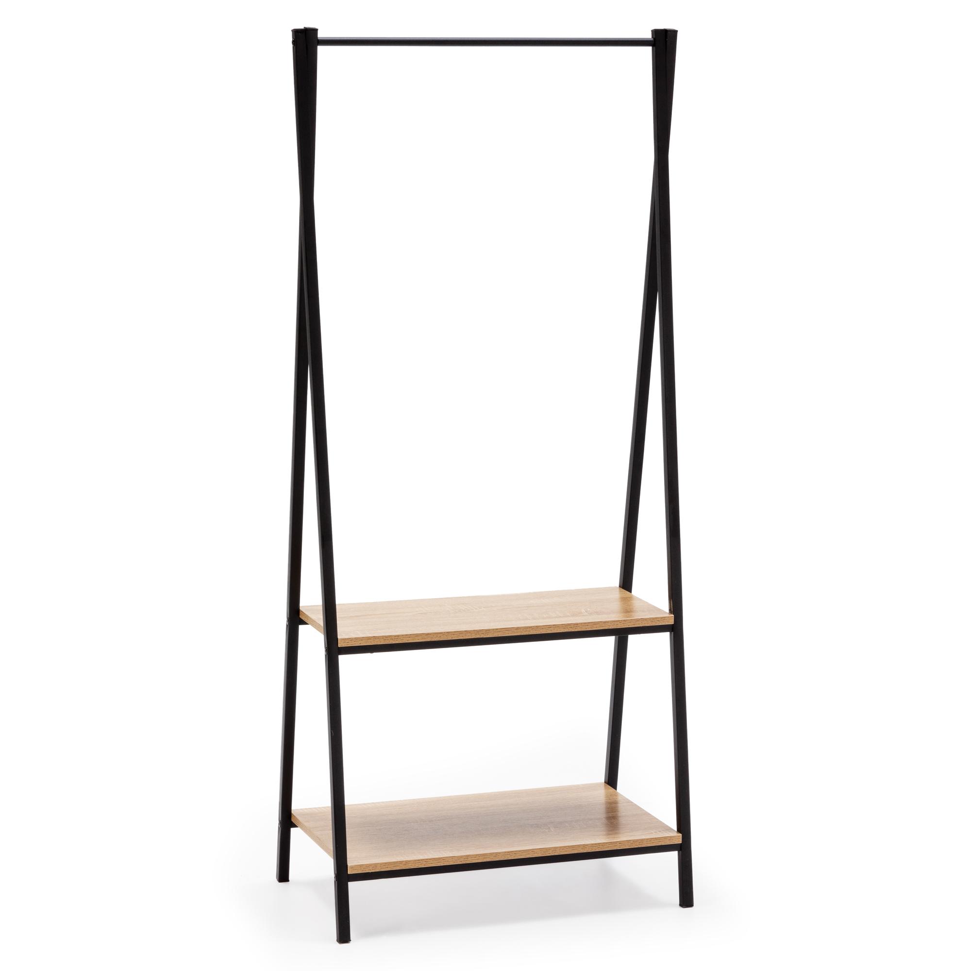 Portemanteau Carla avec étagère 2 étagères 1 barre, coloris chêne/noir