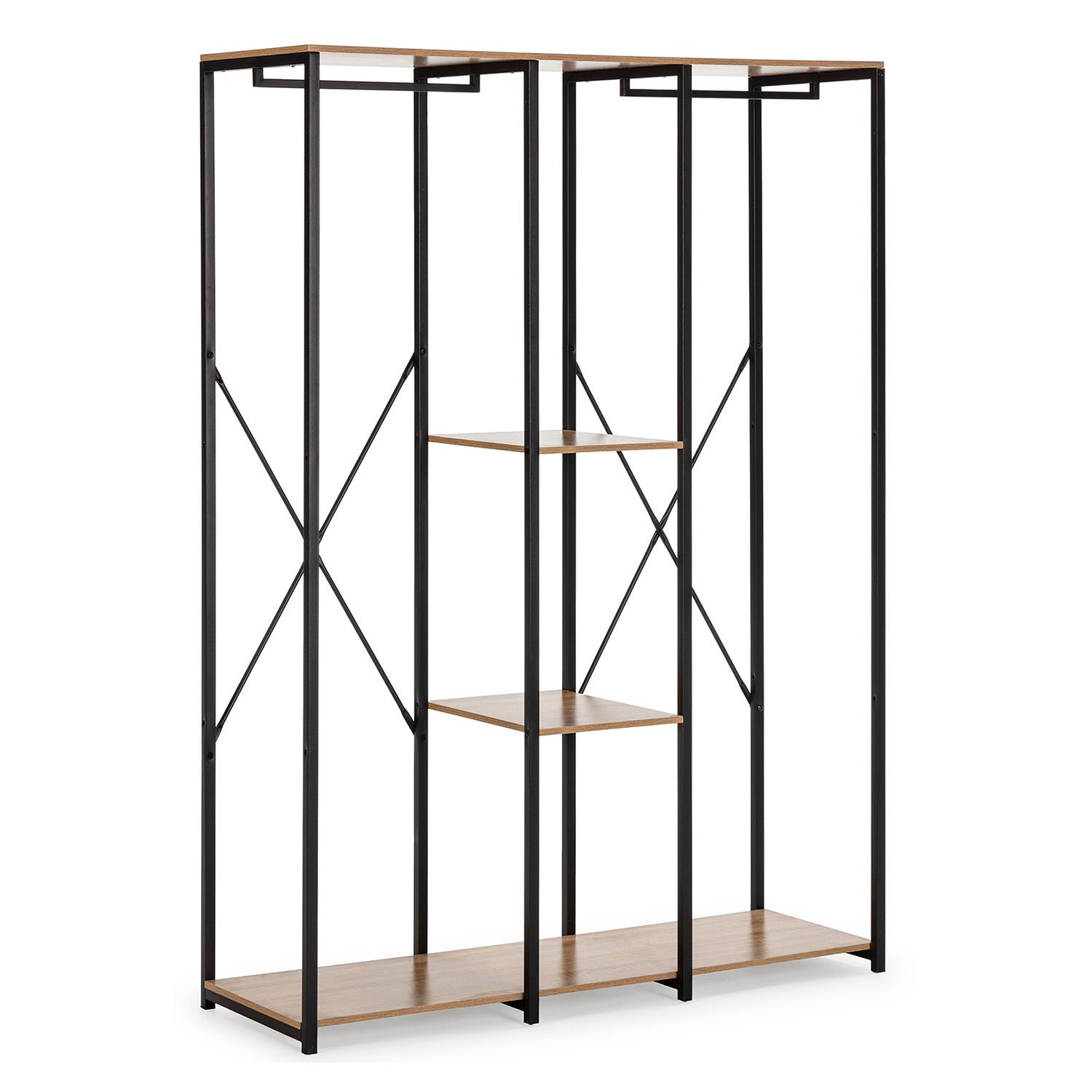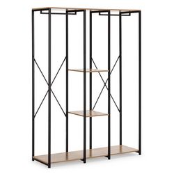 ·, Cette armoire avec portemanteau est en mélamine et contient 3 étagères et 2 barres pour accrocher les cintres avec les vêtements. Son cadre en tube noir est en acier et cette structure offre résistance et durabilité.