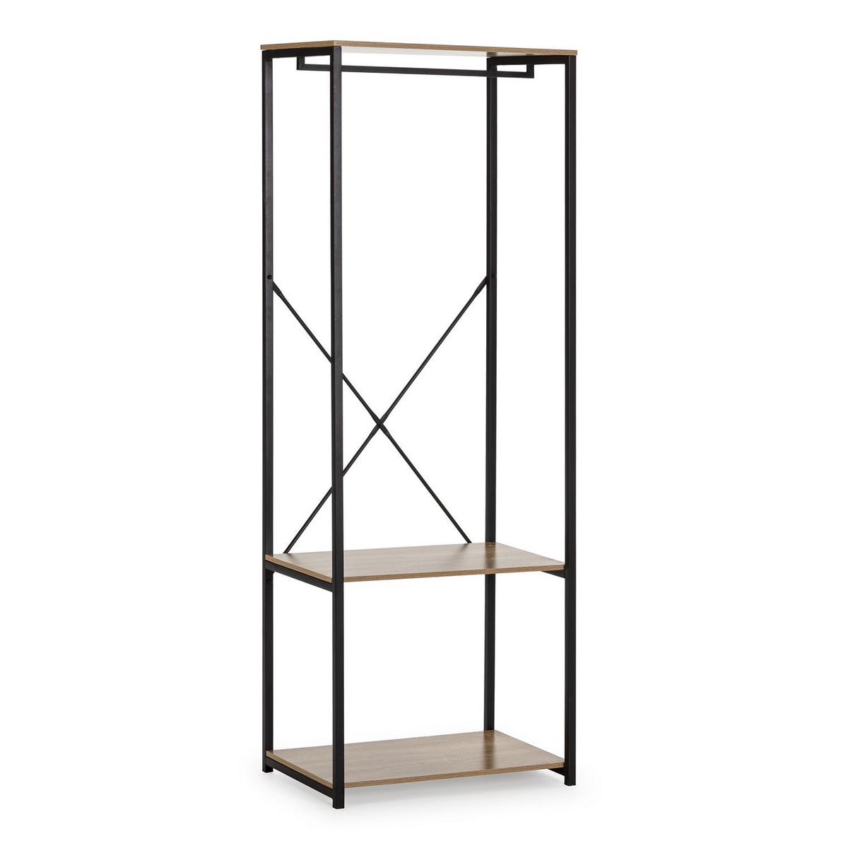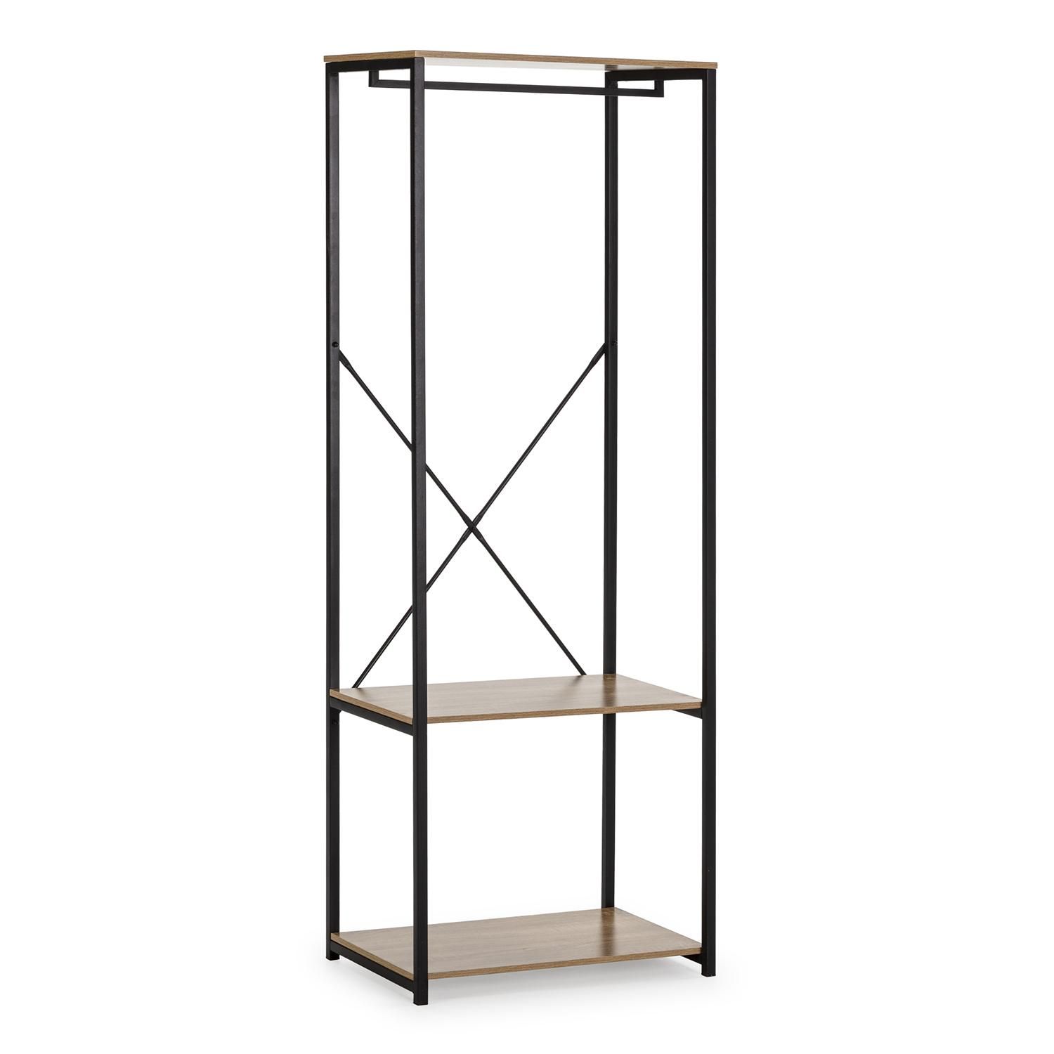Portemanteau Julia 2 étagères 1 barre, couleur chêne/noir