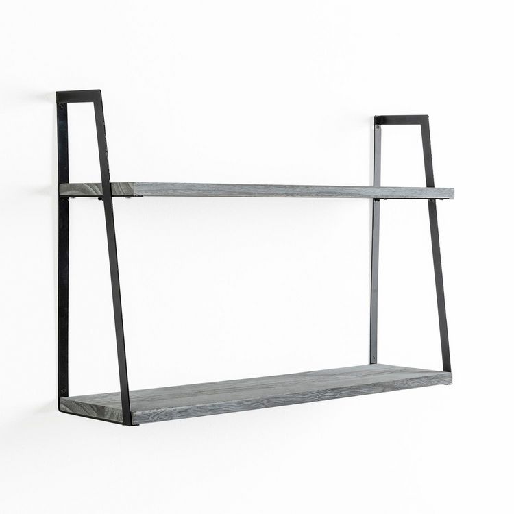 Set de 2 étagères murales Eloi 2 niveaux gris, bois de paulownia