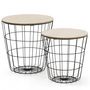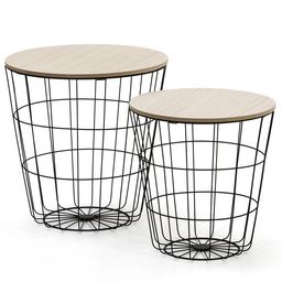 - Tables basses : les tables basses ont des plateaux en bois amovibles qui renferment des paniers en métal, très pratiques comme espace de rangement.