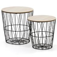 Set de 2 Tables Basses Guili,Plateau en placage de Bois Naturel et Structure en métal