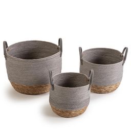 Set de 3 paniers Neves fibre naturelle et papier, gris/naturel