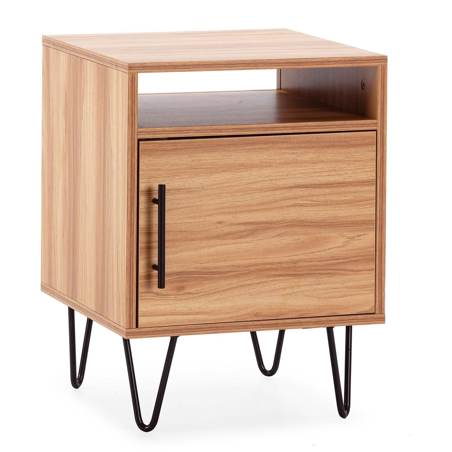 Table de chevet Alma 1 porte coloris bois, pieds métal