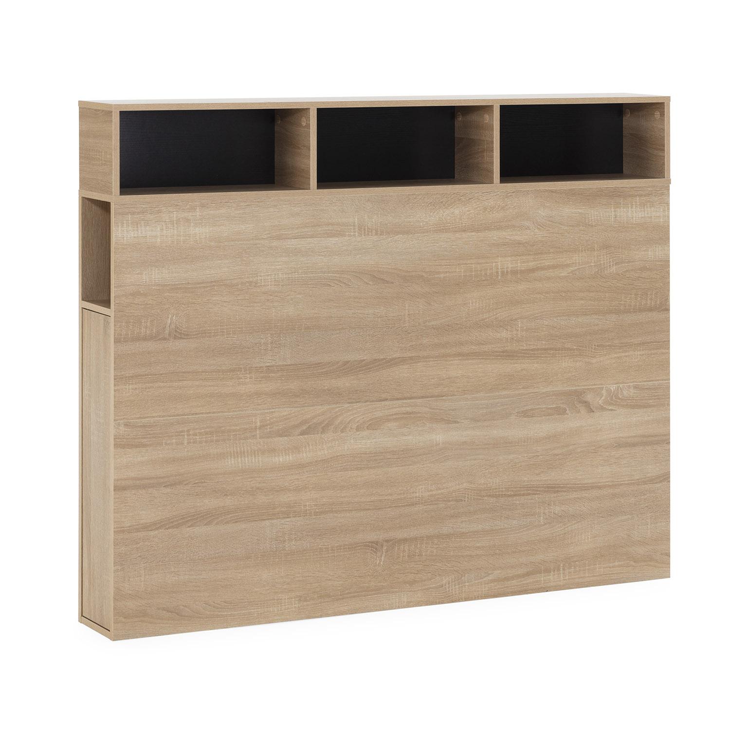 Tête de lit Zeus 165 cm avec rangements chêne, 2 portes 9 trous