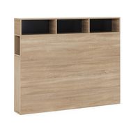 ·, Cette tête de lit est fabriquée en mélamine de haute qualité et durable. Il dispose de capacités de rangement sur les côtés et dans les espaces avant, vous aurez donc la possibilité de vous passer des tables de chevet si vous le souhaitez.