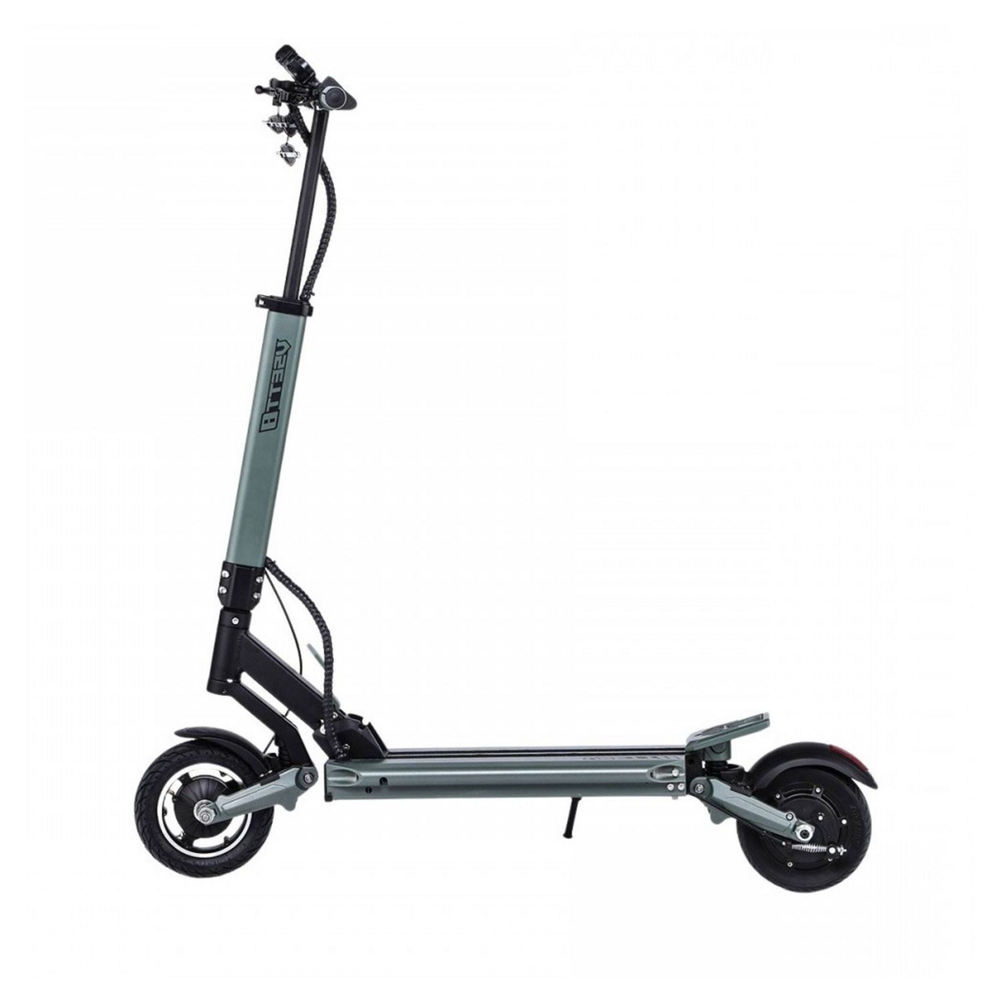 Elle offre un excellent confort avec des suspensions composées d'amortisseurs situés à l'avant et à l'arrière, ainsi que grâce à une large roue avant, (à chambre à air de 8,5" à flanc).Ses deux feux à LED à l'avant et son feux stop à l'arrière offrent une visibilité accrue.