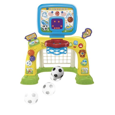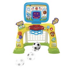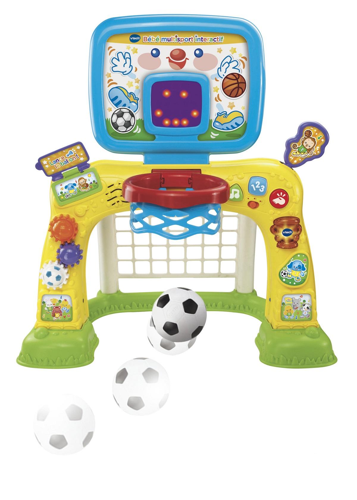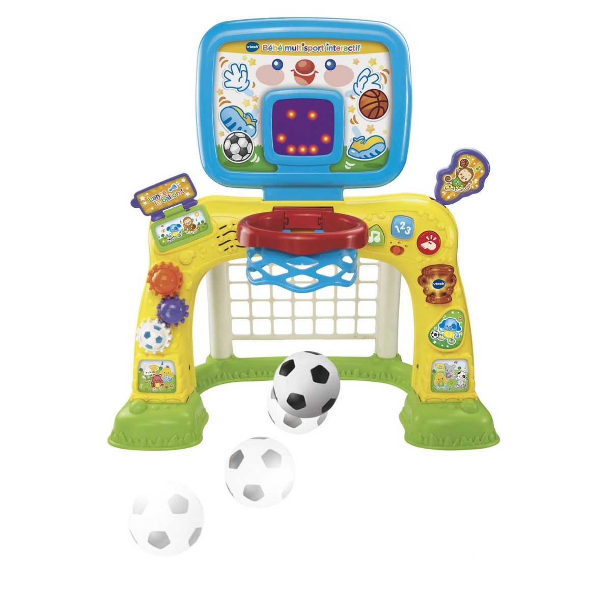 - L’écran affiche les points marqués par Bébé dans les 2 modes de jeu avec de super animations pour l’encourager. A chaque fois que le ballon franchit la ligne de buts ou passe dans le panier de basket, Bébé marque un point !