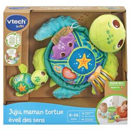 - 3 boutons dont 1 lumineux pour écouter des chansons et des mélodies, déclencher des sons amusants et apprendre des anecdotes sur maman tortue et son bébé.