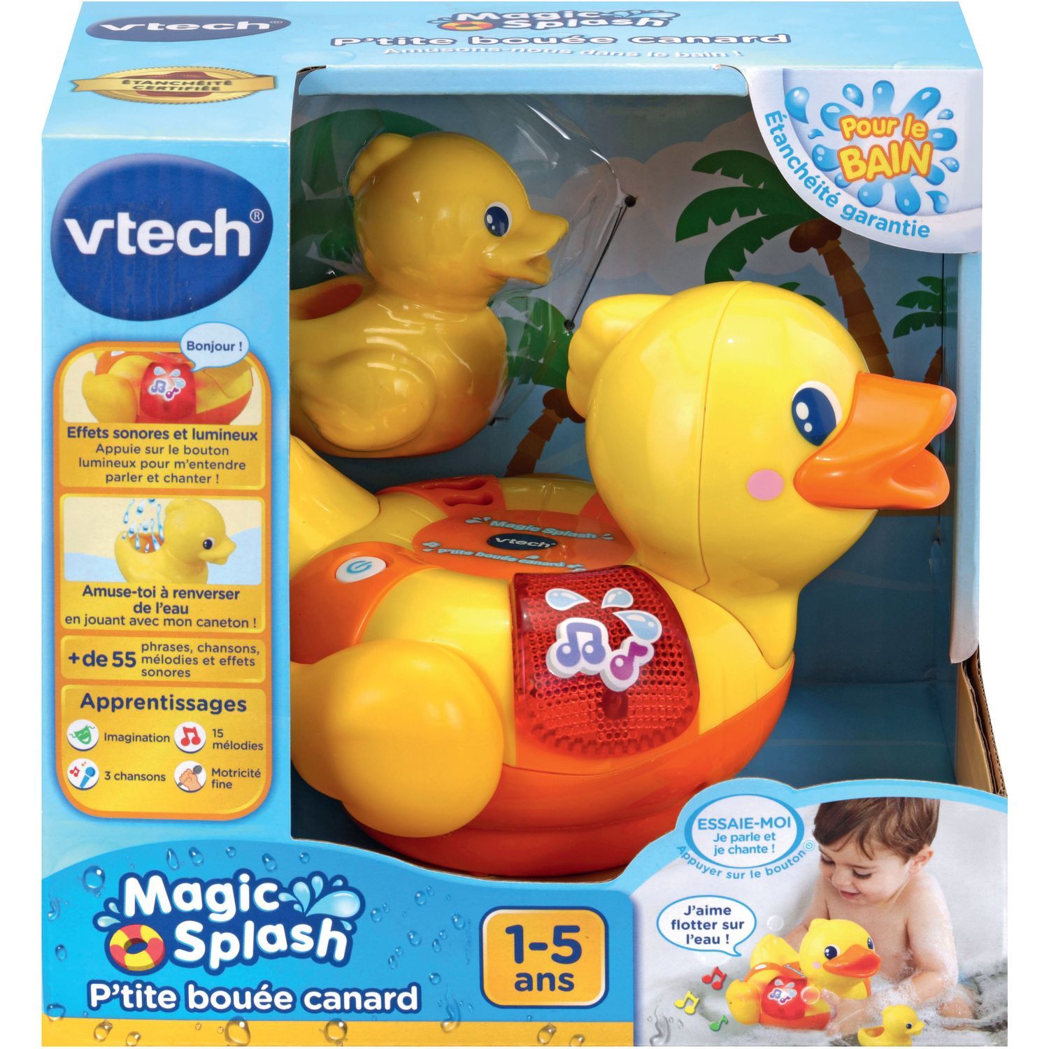D'adorables bouées qui flottent dans le bain pour jouer avec Bébé. Un bouton lumineux pour déclencher plus de 55 chansons, mélodies, sons et phrases. 1 accessoire de bain inclus.