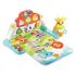 - Sur le dos : Bébé s’amuse à taper dans le ballon de foot, à toucher les boutons du tableau d’éveil et joue avec les hochets suspendus à la girafe.