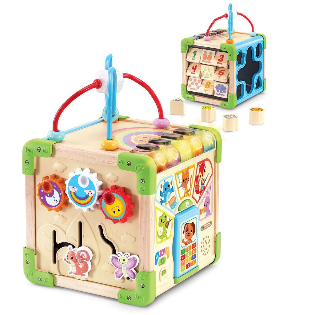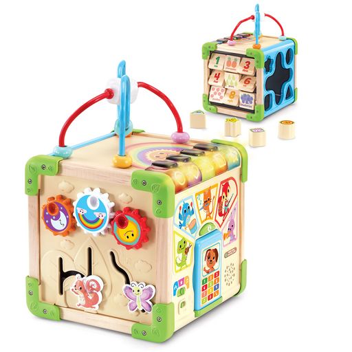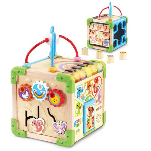 Un cube interactif complet fabriqué en partie en bois certifié FSC®. 5 faces d'activités et 3 modes de jeu pour éveiller les sens de Bébé. Nombreuses interactions et éléments à manipuler. Dès 9 mois.