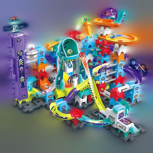 Le VTech Marble Rush - Space Magnetic Set XL 300 E est un ensemble de construction interactif composé de 115 pièces. Ce jouet éducatif et ludique permet aux enfants de 4 à 12 ans de créer des circuits à billes attractifs avec courbes et tunnels. Il comprend des billes magnétiques offrant des effets