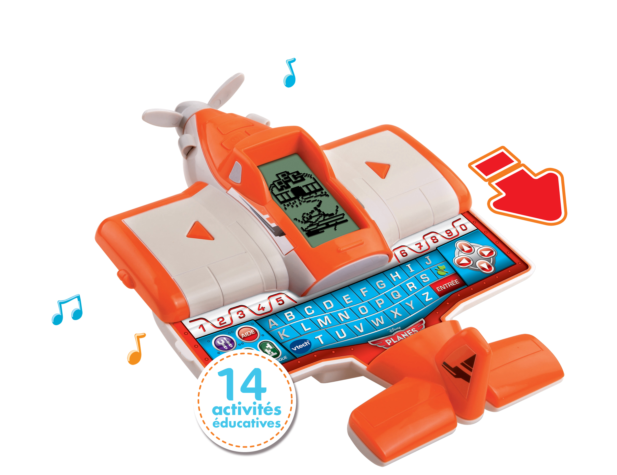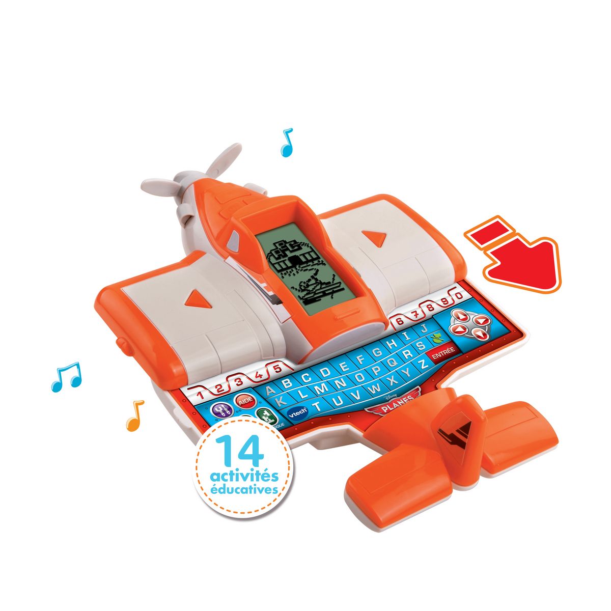 Un mini-ordinateur en forme d'avion aux couleurs de Dusty avec clavier coulissant ! 14 activités éducatives pour découvrir et apprendre les lettres, les mots, les chiffres, les formes et les sons. 2 modes de jeu : mode Aventure pour jouer avec Dusty et mode Apprentissage
