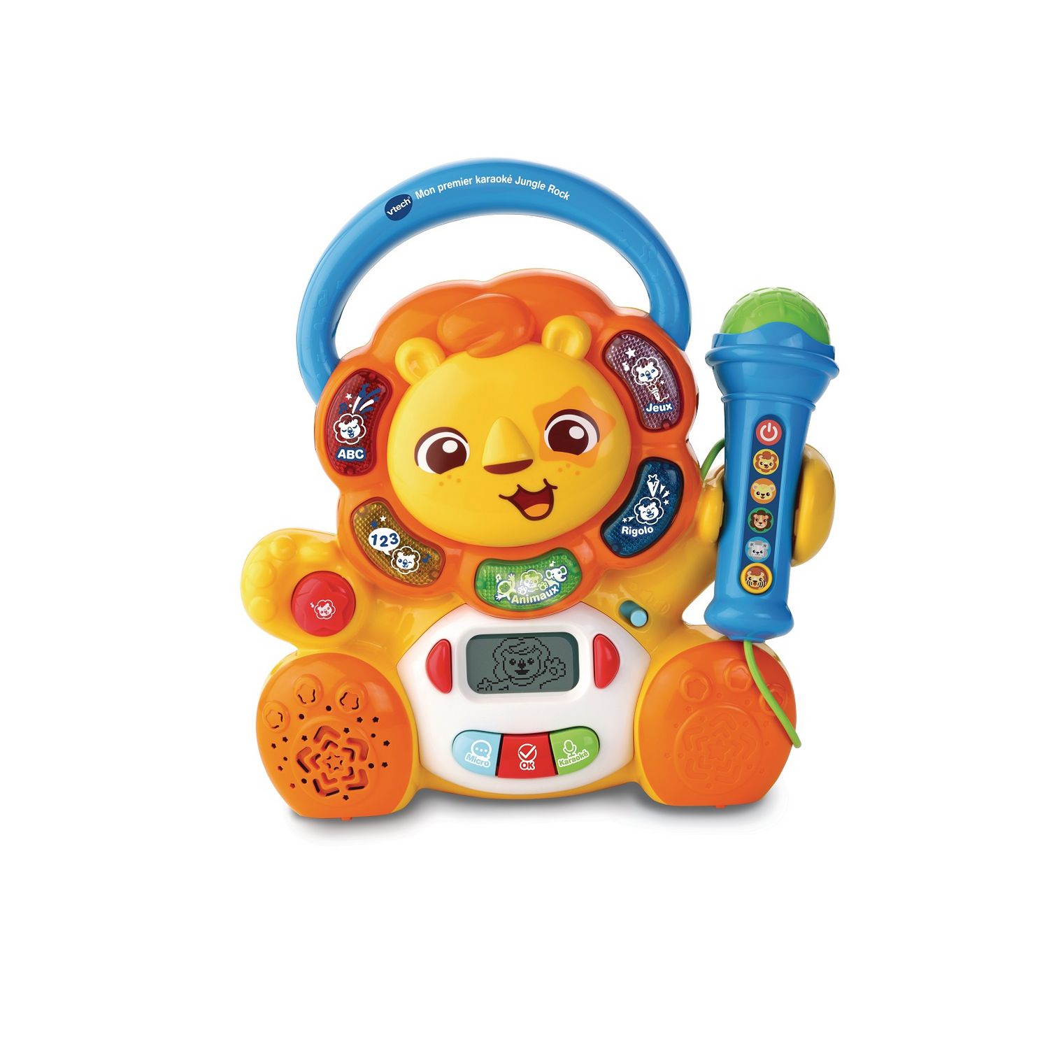 Jungle rock le lion karaoké est le jeu idéal pour initier votre enfant au karaoké et à la musique ! Ce jeu propose des heures de karaoké sur 4 catégories différentes : ABC, nombres, animaux et fun.