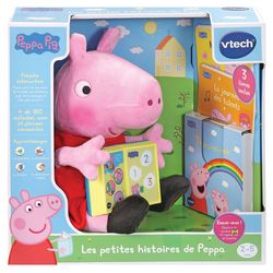 Découvrez des petites histoires avec la peluche interactive Peppa Pig. Cette peluche interactive pour lire, apprendre et écouter les aventures de Peppa Pig. Les 2 boutons situés sur les chaussures de Peppa permettent à l’enfant d’interagir avec Peppa en discutant avec elle ou en apprenan