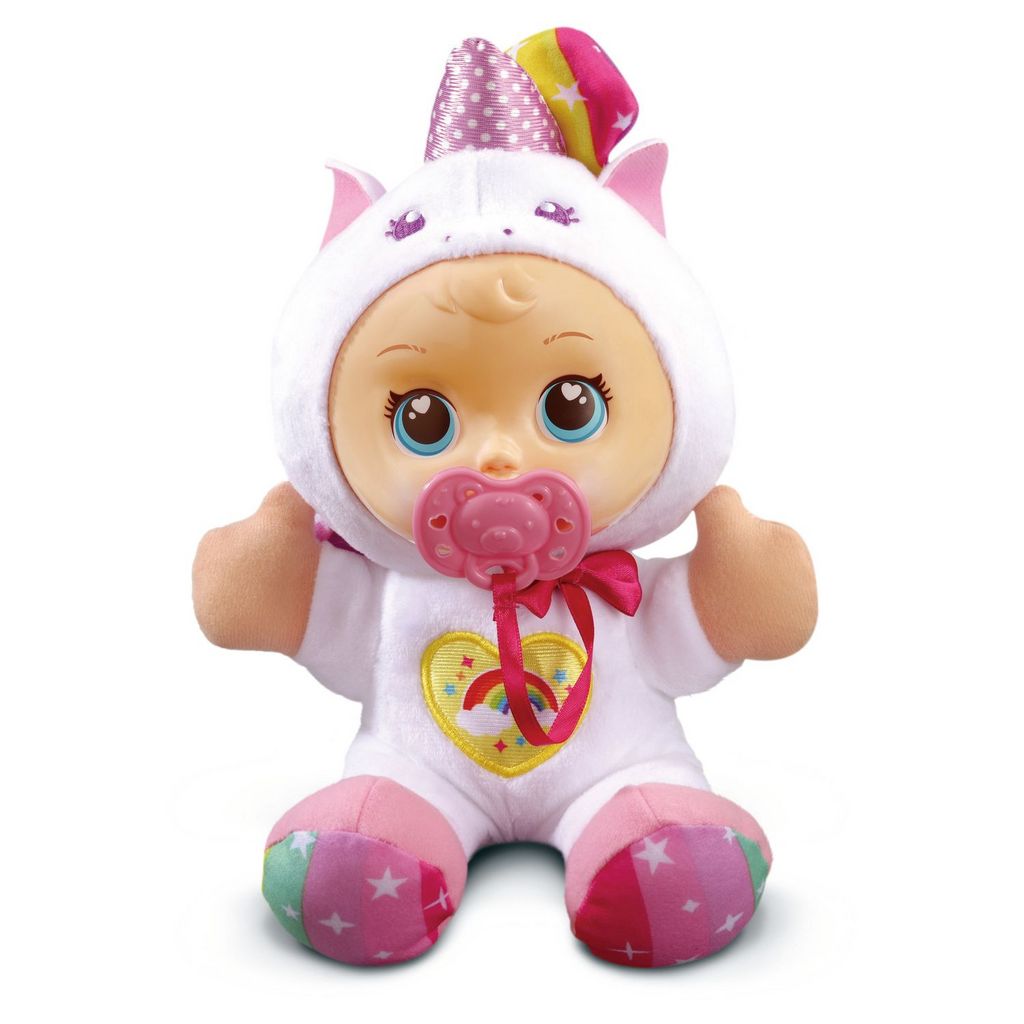 Découvre Paillette, un poupon parlant et musical trop craquant déguisé en licorne ! Appuie sur le gros bouton lumineux sur son ventre pour déclencher des chansons, des phrases amusantes et des sons rigolos.