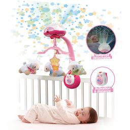 Lumi mobile compte-moutons rose - 0 - 36 mois Un mobile 3 en 1 avec télécommande et projecteur détachable : - mobile - projection lumineuse étoilée avec variation de couleurs - veilleuse : projection avec variation de couleurs (rouge, verte ou bleue) Le mobile tourne doucement en musique et les 3 pe