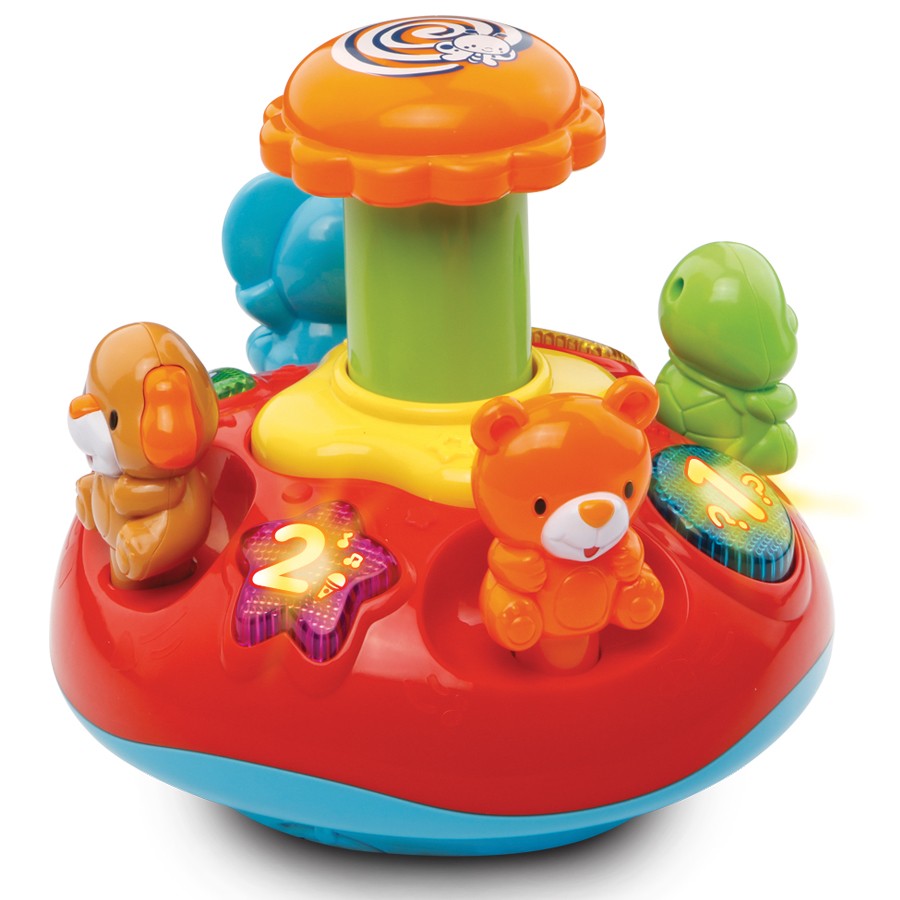 Bébé va s'éclater avec Lumi la toupie des animaux de Vtech : D'une simple pression sur son bouton central bébé fait tourner la toupie et déclenche plein de sons rigolos ! En manipulant les 4 mignons animaux interactifs bébé apprend leur nom et leur couleur ! 4 boutons lumineux sont présents pour faire découvrir les formes les chiffres et déclencher plein de musiques et de joyeuses mélodies !