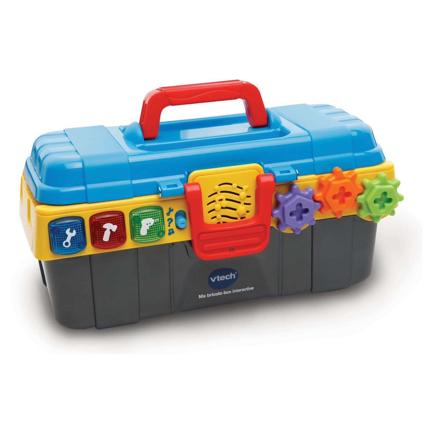- 3 boutons lumineux et 3 engrenages pour découvrir les outils et les couleurs.