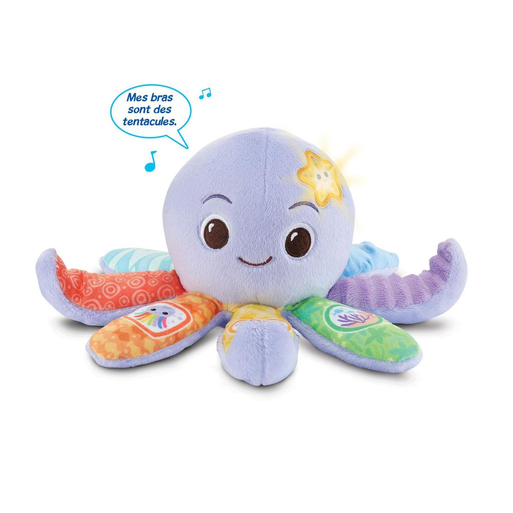 Découvrez la Pieuvre Musicale Lila, un jouet interactif coloré pour les bébés de 3 à 36 mois. Cette peluche stimule les sens de votre enfant avec ses mélodies marines et ses sons amusants. Avec trois boutons sur ses tentacules, votre enfant active des phrases ludiques et des chansons entraînantes. L