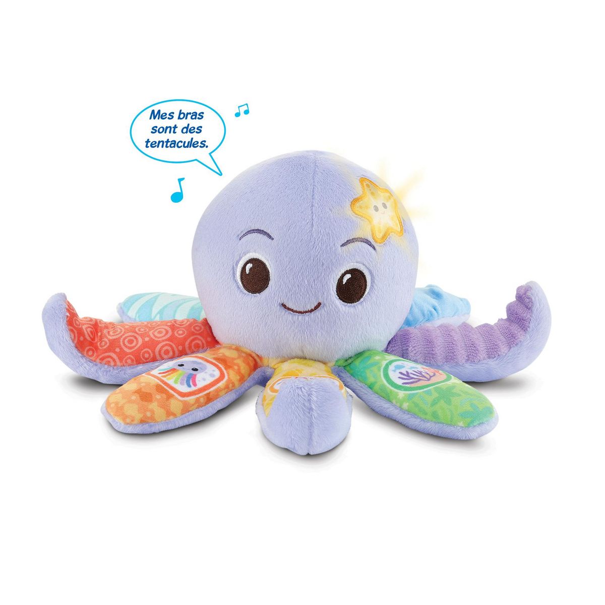 Découvrez la Pieuvre Musicale Lila, un jouet interactif coloré pour les bébés de 3 à 36 mois. Cette peluche stimule les sens de votre enfant avec ses mélodies marines et ses sons amusants. Avec trois boutons sur ses tentacules, votre enfant active des phrases ludiques et des chansons entraînantes. L'étoile lumineuse au sommet s'illumine en rythme avec les sons, offrant une expérience immersive. Explorez les textures sur ses tentacules pour un éveil sensoriel. Lila propose trois chansons et quinze mélodies, avec une fonction d'arrêt automatique et un réglage du volume. Inclus : 2 piles LR03.