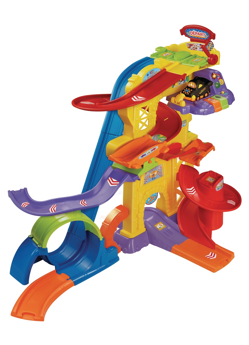 Le maxi circuit looping Tut tut bolides de Vtech a une hauteur de près de 75 cm. Loopings, grande descente, zig zag, ton véhicule prendra à coup sûr de la vitesse lors de ses cascades ! Votre enfant apprendra tout en s'amusant grâce aux 2 modes de jeu : un mode musique et un mode découvertes dans lequel il entendra le nom des couleurs et des outils. Le passage de la voiture de course sur les zones magiques émettent les sons. Génial, le circuit peut faire partir jusqu'à 2 véhicules, avec un choix entre 3 chemins différents à emprunter !