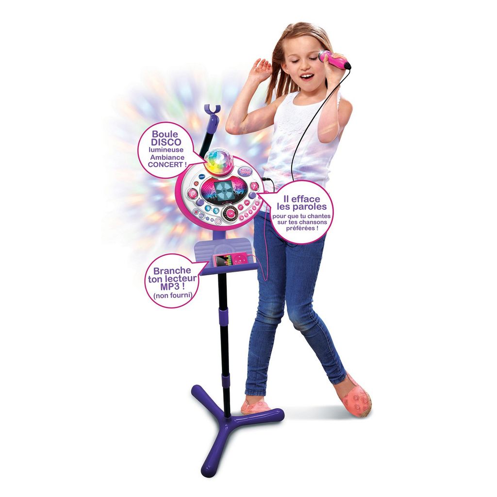 Le jouet musical électronique Vtech Superstar Light Show Rose est un micro sur pied interactif conçu pour les enfants de 4 à 10 ans. Équipé d'une boule disco orientable et de lumières colorées synchronisées avec la musique, il transforme chaque performance en spectacle captivant. Idéal pour stimuler la créativité et l'expression scénique.