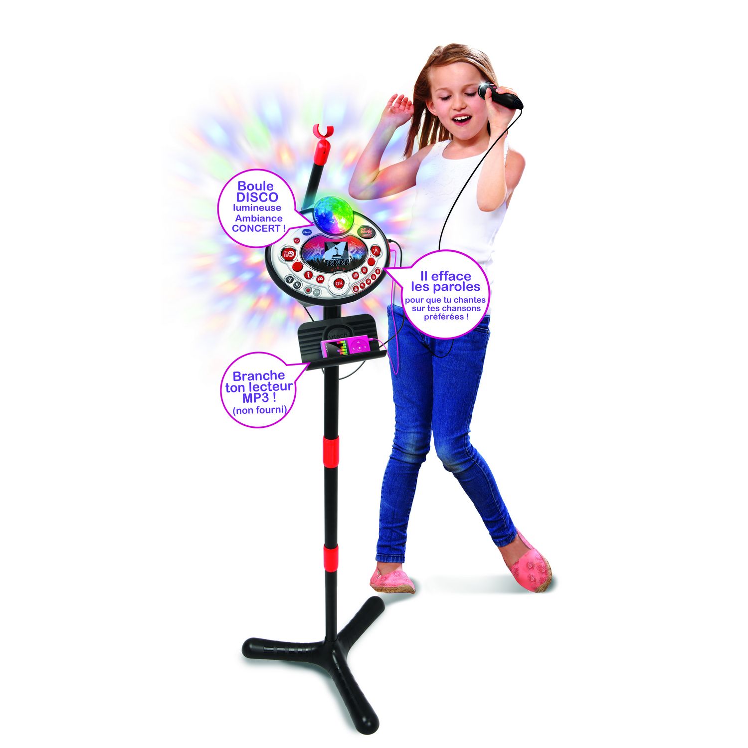 Le Vtech Superstar Light Show propose diverses fonctionnalités amusantes, notamment le mode Music Magic qui permet de réduire ou de supprimer la voix principale des chansons, laissant l'enfant prendre le rôle de chanteur principal. De plus, le jouet inclut des effets vocaux drôles pour modifier la voix, ainsi que des lumières disco motorisées qui créent une ambiance festive. Les enfants peuvent également enregistrer et écouter leurs performances grâce à la fonction d'enregistrement intégrée.