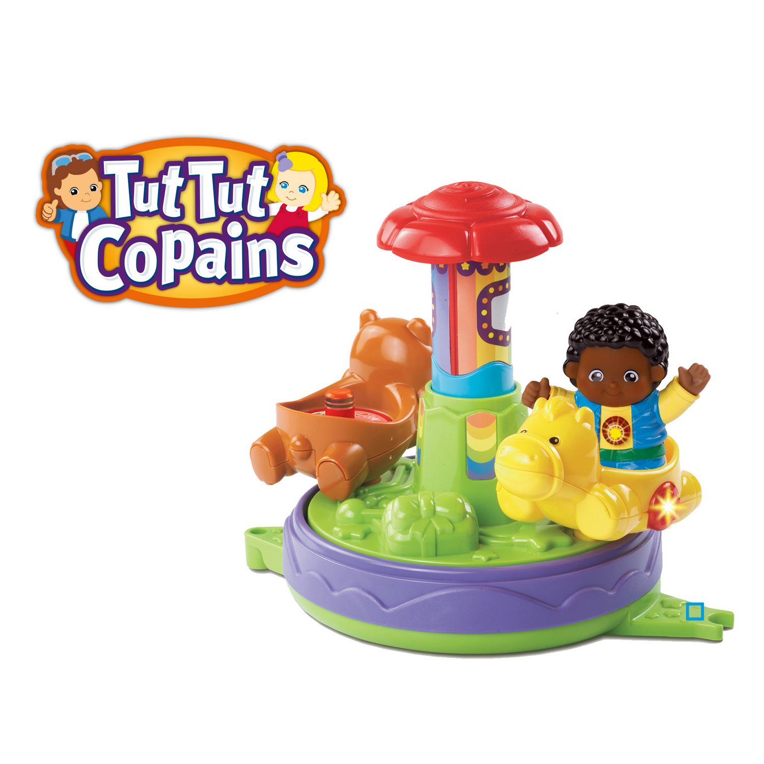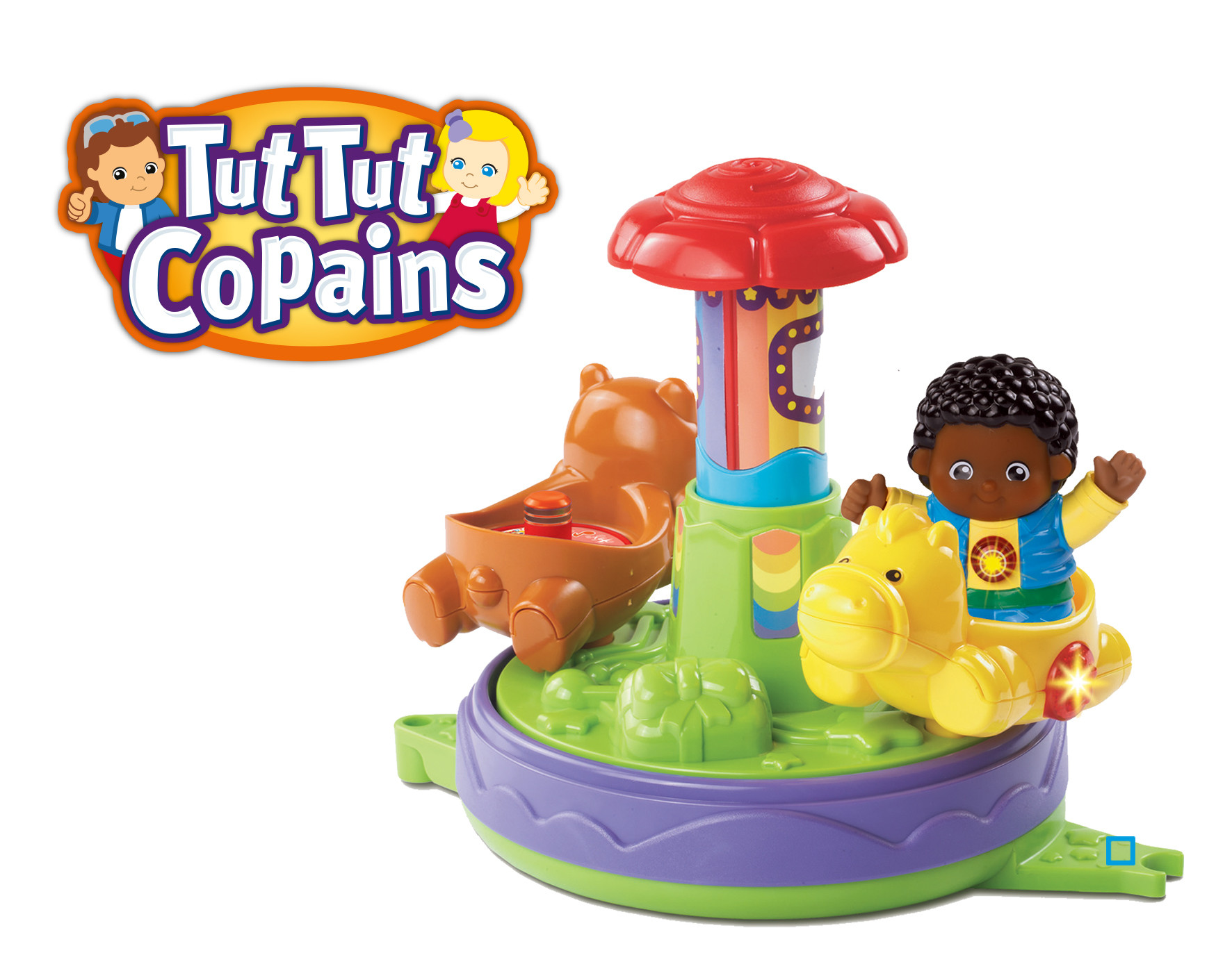 Fais un tour dans le manège magique en compagnie de Titou, p’tit casse-cou! Insère un personnage Tut Tut Copains sur l’un des ronds magiques du manège : le manège s’illumine et tourne tout seul, c’est magique!