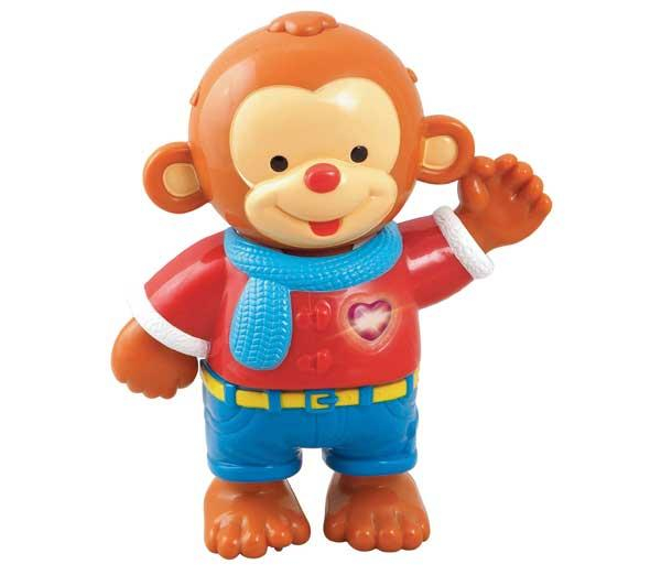 - quand Bébé appuie sur le coeur lumineux, le petit singe lui demande de l'habiller en fonction des ses envies ou de la météo