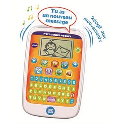 P'tit genius pocket Vtech, la première tablette éducative pour recevoir et envoyer des messages ! Sensible aux mouvements, il suffit d'incliner la tablette pour jouer aux 8 activités proposées. Un pingouin accompagne l'enfant dans ses découvertes jeux et exercices (chiffres, lettres, vocabulaire, l